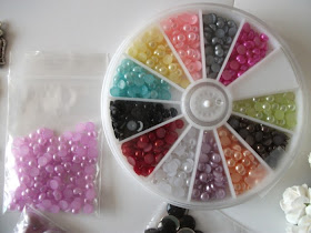 Купила разноцветные полужемчужинки в коробочке- удобно хранить. Сиреневых ещё и дополнительно.